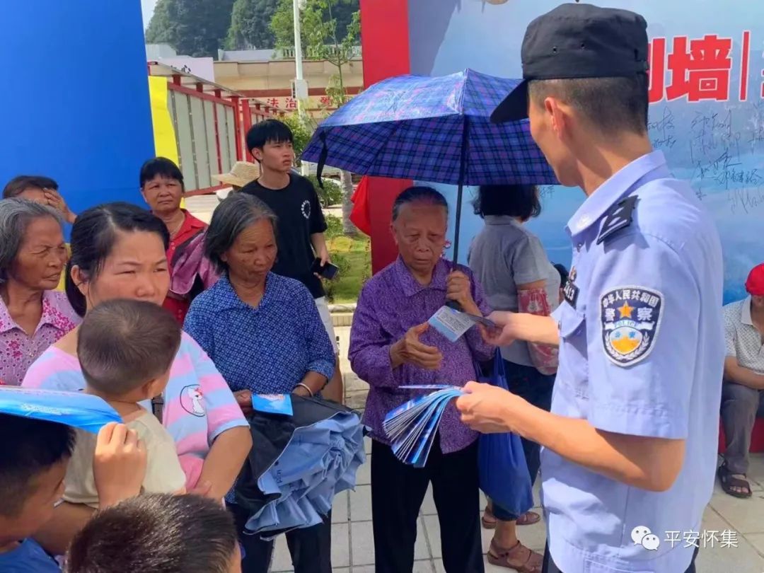 为进一步提升群众识骗防骗意识和网络安全防范能力,预防和减少电信诈骗案件的发生,农历六月初六,怀集县公安局桥头派出所抓住燕子节期间群众返乡、旅游的有利契机,大力开展防范电信网络诈骗宣传活动。