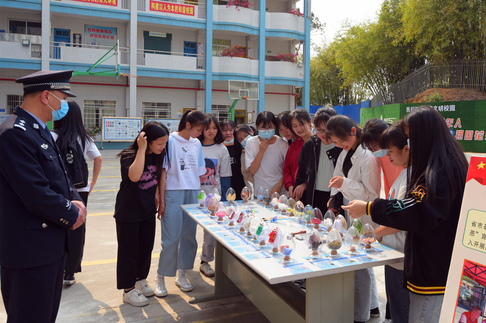 同时,活动还为同学们发放了扫黑除恶、禁毒、预防校园暴力等宣传单,组织师生们观看仿真毒品模型,为同学们现场讲解毒品的危害,教育引导师生珍爱生命、拒绝毒品、健康生活。