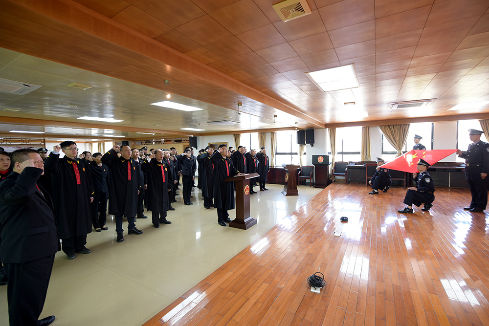 伴随着庄严的国歌声,院党组书记、院长黄愿坚左手抚按《中华人民共和国宪法》,右手举拳,领诵誓词,“我宣誓:忠于中华人民共和国宪法,维护宪法权威,履行法定职责,忠于祖国、忠于人民,恪尽职守、廉洁奉公,接受人民监督,为建设富强民主文明和谐美丽的社会主义现代化强国努力奋斗。”短短70余字誓言铿锵有力,展现着干警对祖国、对宪法的承诺。