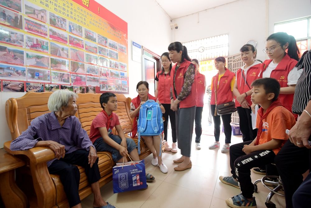 为贯彻落实党的十九大精神,进一步深化“巾帼文明岗”创建活动,充分发挥“巾帼文明岗”在精准脱贫、乡村振兴中优势和作用,帮助贫困妇女脱贫致富,推动城乡妇女共同发展。根据县妇联《关于深入开展“百岗联百村、共建新农村”活动的通知》的文件精神要求,5月16日上午,我院妇委会和被授予“全国巾帼建功先进集体”“广东省巾帼文明岗”的立案庭组成的慰问组在党组成员、副院长何莉珍的带领下,到甘洒镇罗密村对困难家庭的患重大疾病的妇女、留守老人、留守儿童开展巾帼送温暖、法治宣传活动。