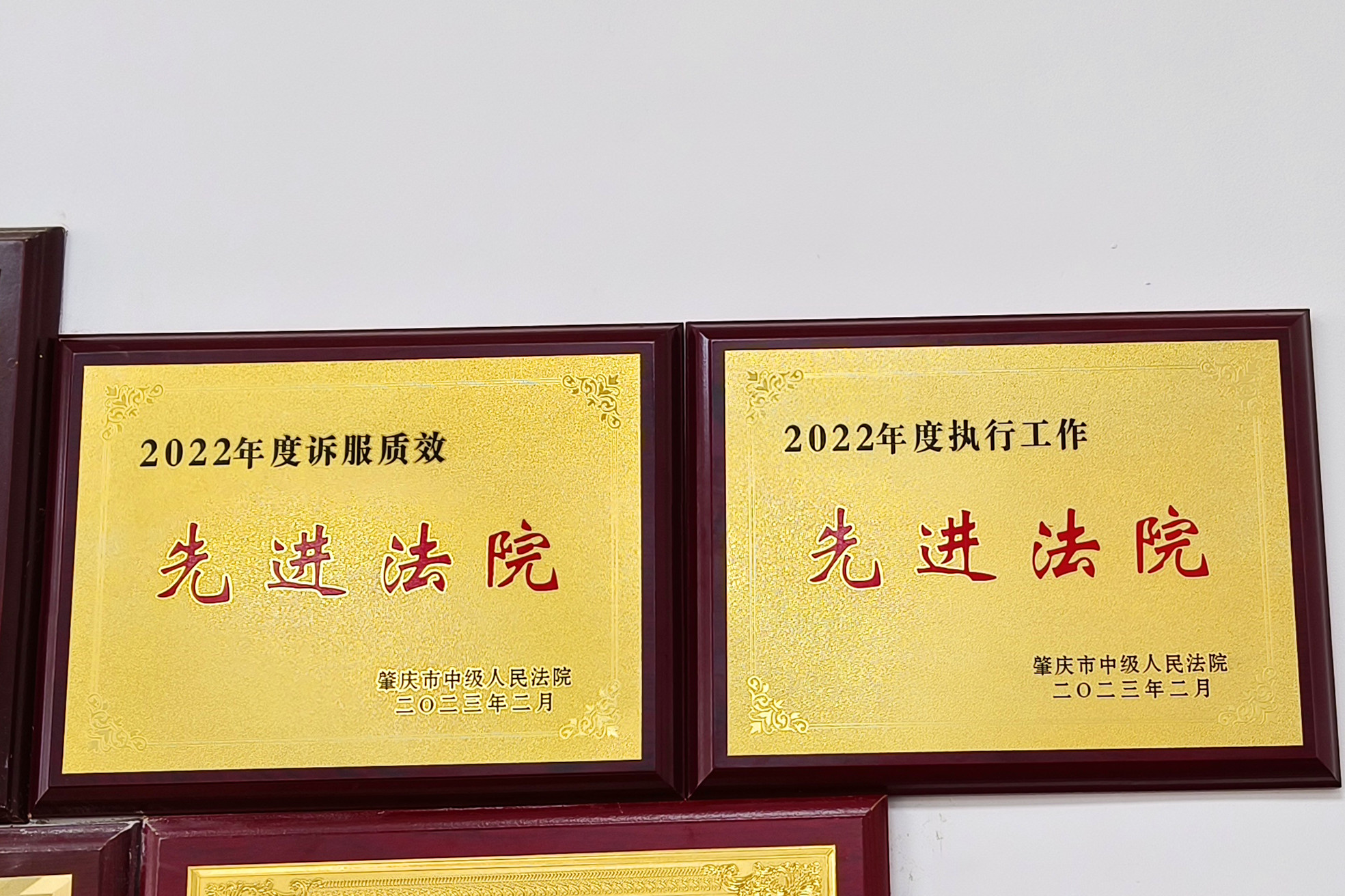 2022年,怀集法院紧紧围绕中心服务大局,充分发挥审判职能作用,切实践行司法为民,持续优化诉讼服务质效,切实兑现胜诉权益,各项工作取得新进展。其中,在全国法院诉讼服务质效评估体系平台得分在全省法院排名中与其他兄弟法院并排第一,执行案件结案同比增幅55.19%,有财产案件期限内执结率、执行完毕率、关键节点平均超期数等多项执行工作核心指标排名全市第一。